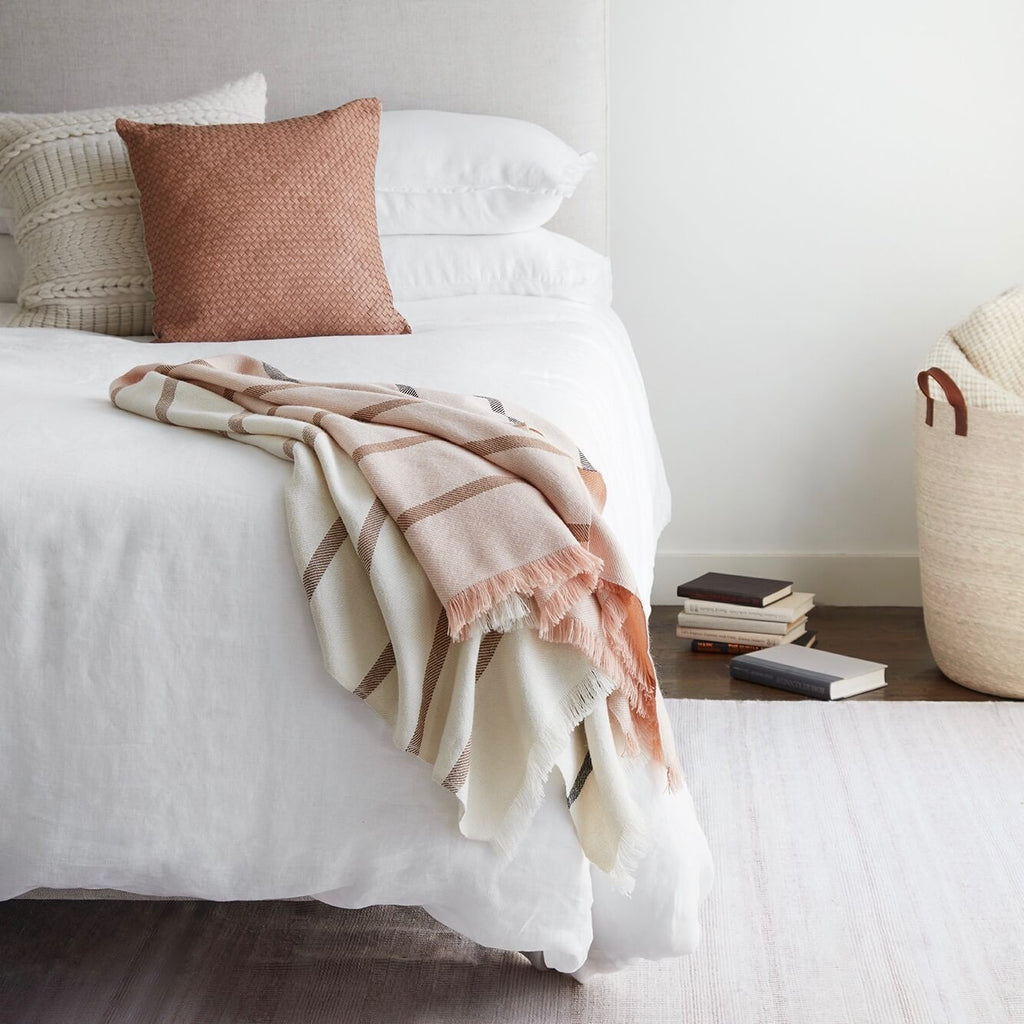 Featuring a color-block grid of warm, desert tones, this throw blanket is a thing of beauty. Hand-loomed from luxuriously soft alpaca, it’s made for those all-wrapped-up-and-cozy days.