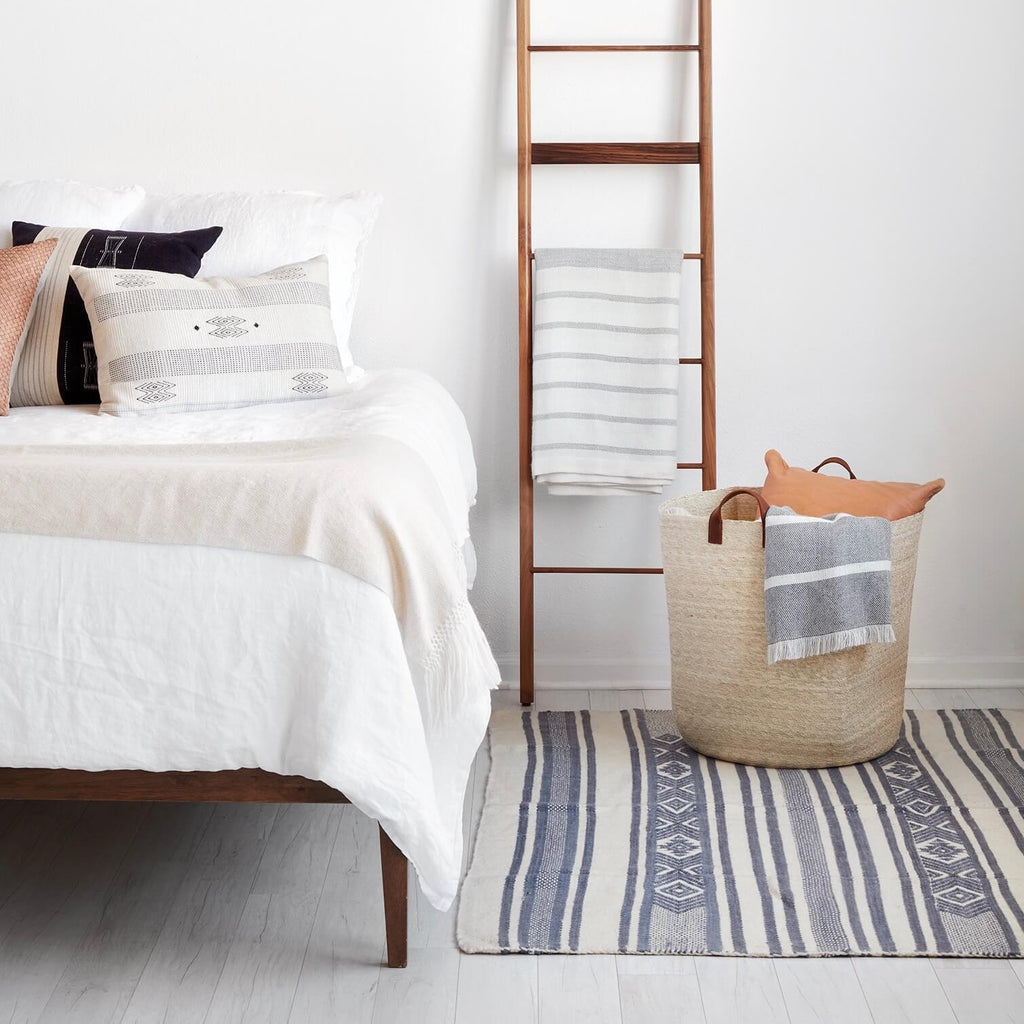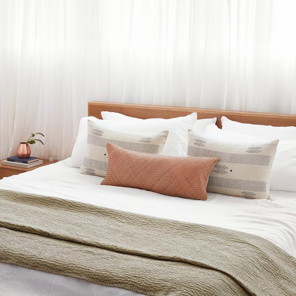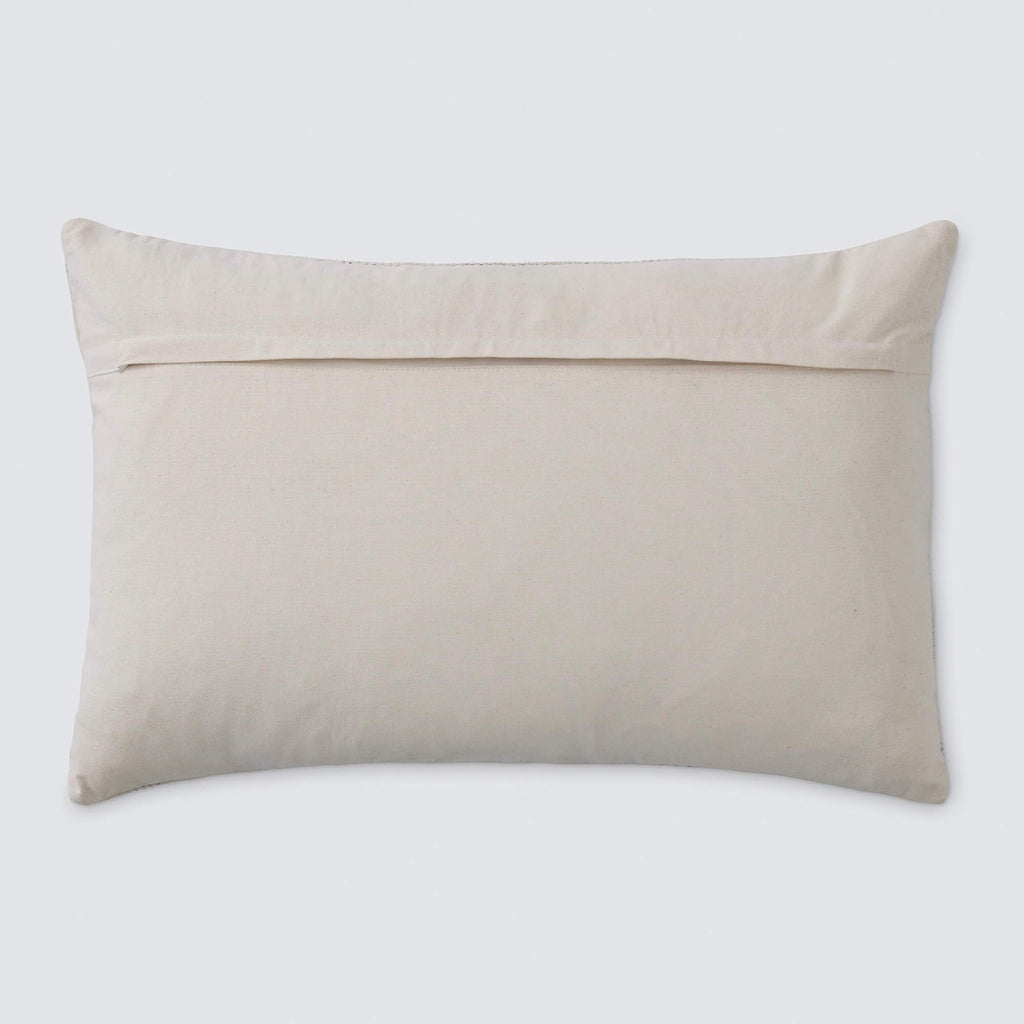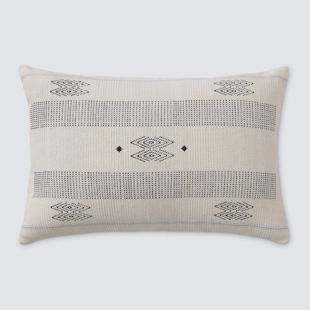A simple, yet striking lumbar pillow with a found-this-while-globetrotting feel. Featuring a minimal design with subtle pops of blue, this accent pillow is made to mix-and-match.