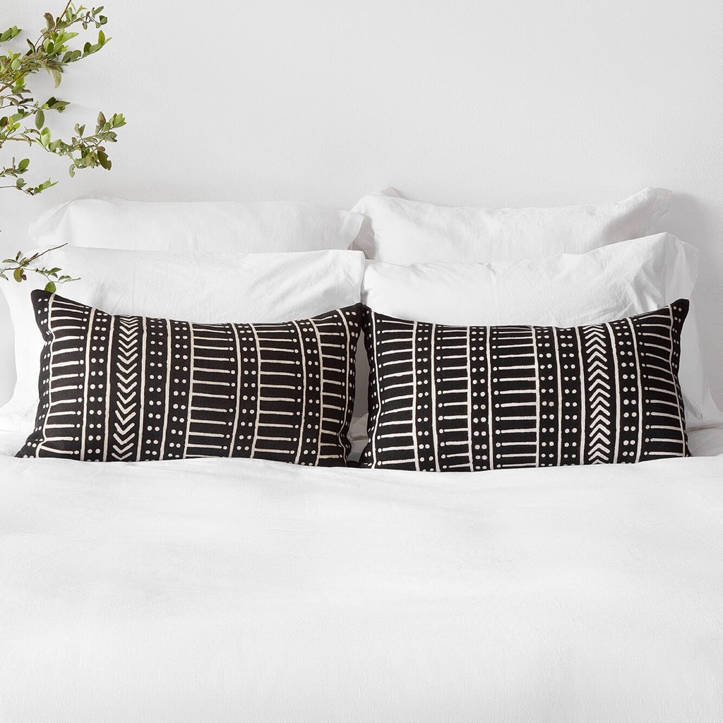 A meticulously hand-painted design of arrows, dots, and dashes, this lumbar pillow features Mali’s ancient art of mud cloth at its finest. Style it solo or as a duo on a bed - wherever this guy goes, he’s sure to bring just the right amount of global style to the look.