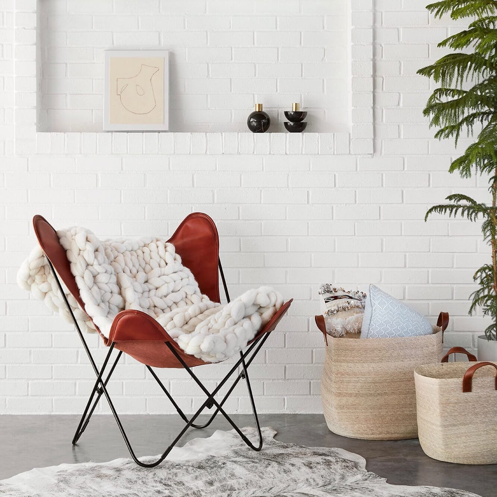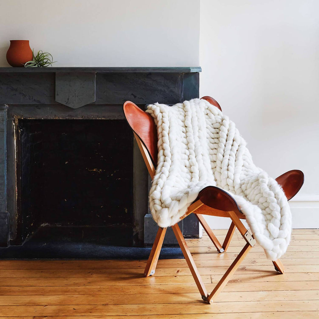 Made from thick unspun wool, this extra chunky throw is looped entirely by hand. Designed in a compact, easy-to-style size, it adds an insanely lush finishing touch to a side chair or sofa.