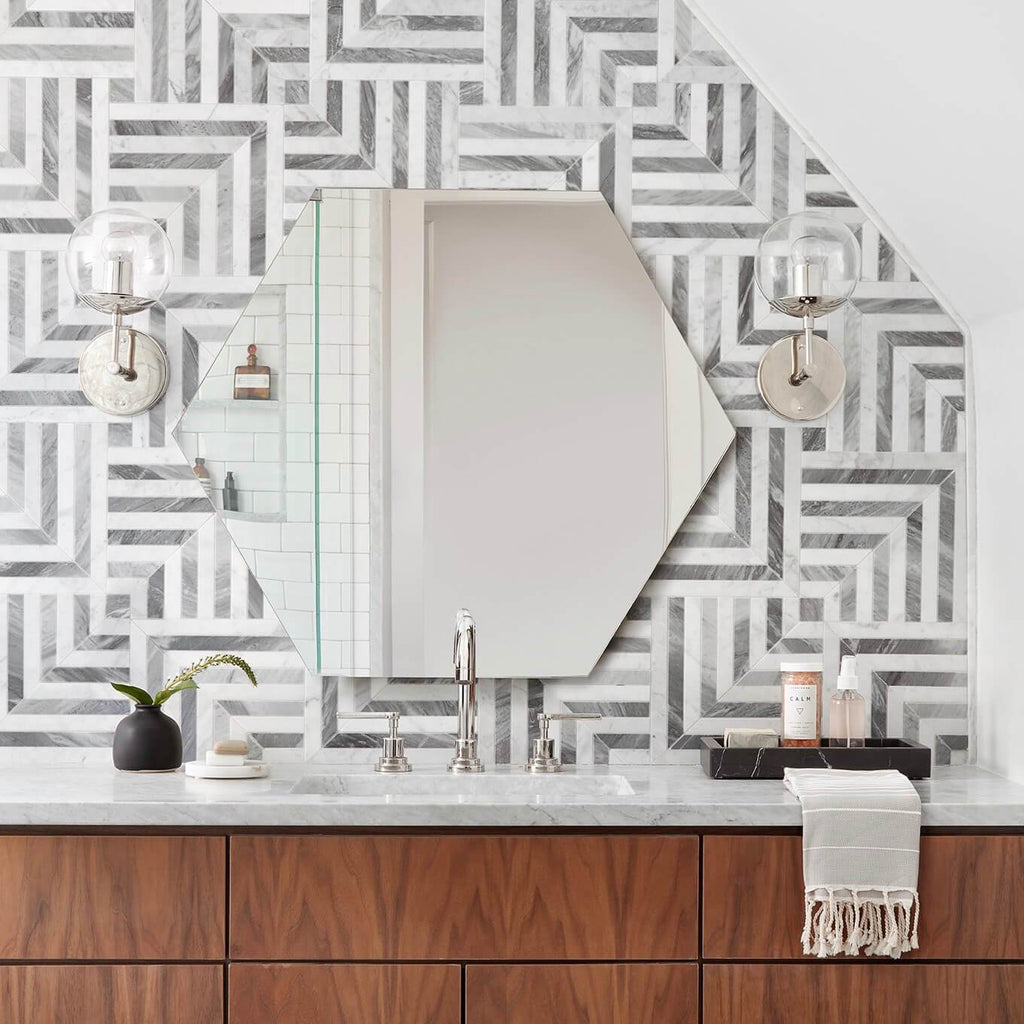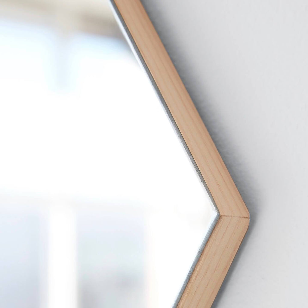 Sharp, structural corners. Luxe wood detailing. This modern hexagon mirror adds an artful twist to your space. Style in a bathroom or an entryway for an effortlessly cool look.