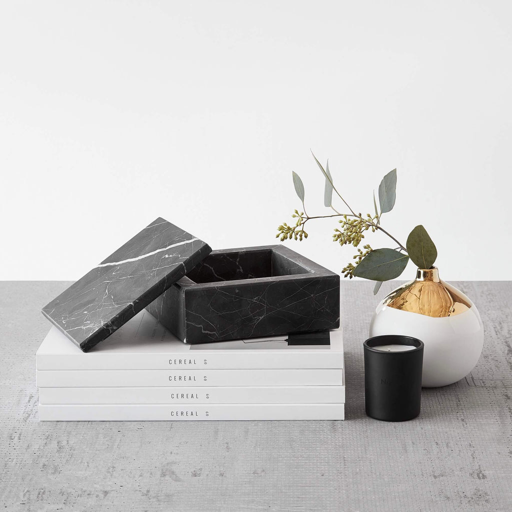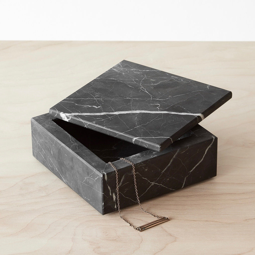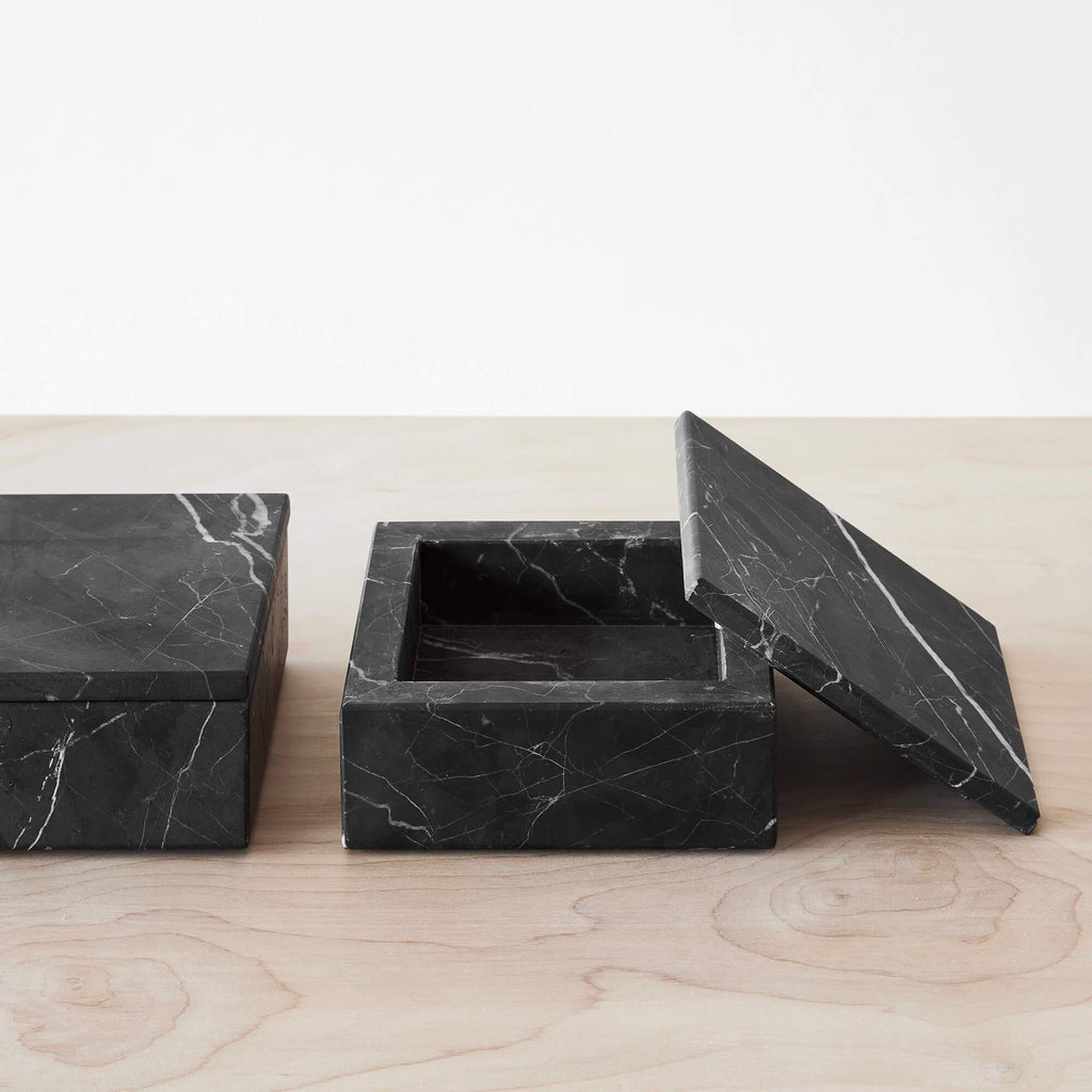 A sculptural accent piece created with an eye for both beauty and function. Meticulously hand-carved with rich black marble from Nuevo Leon, this box makes the perfect jewelry holder or coffee table accent.