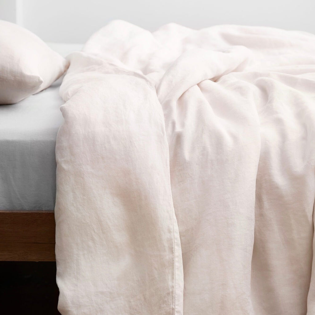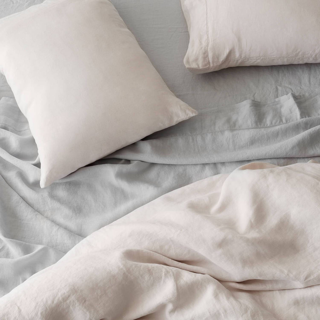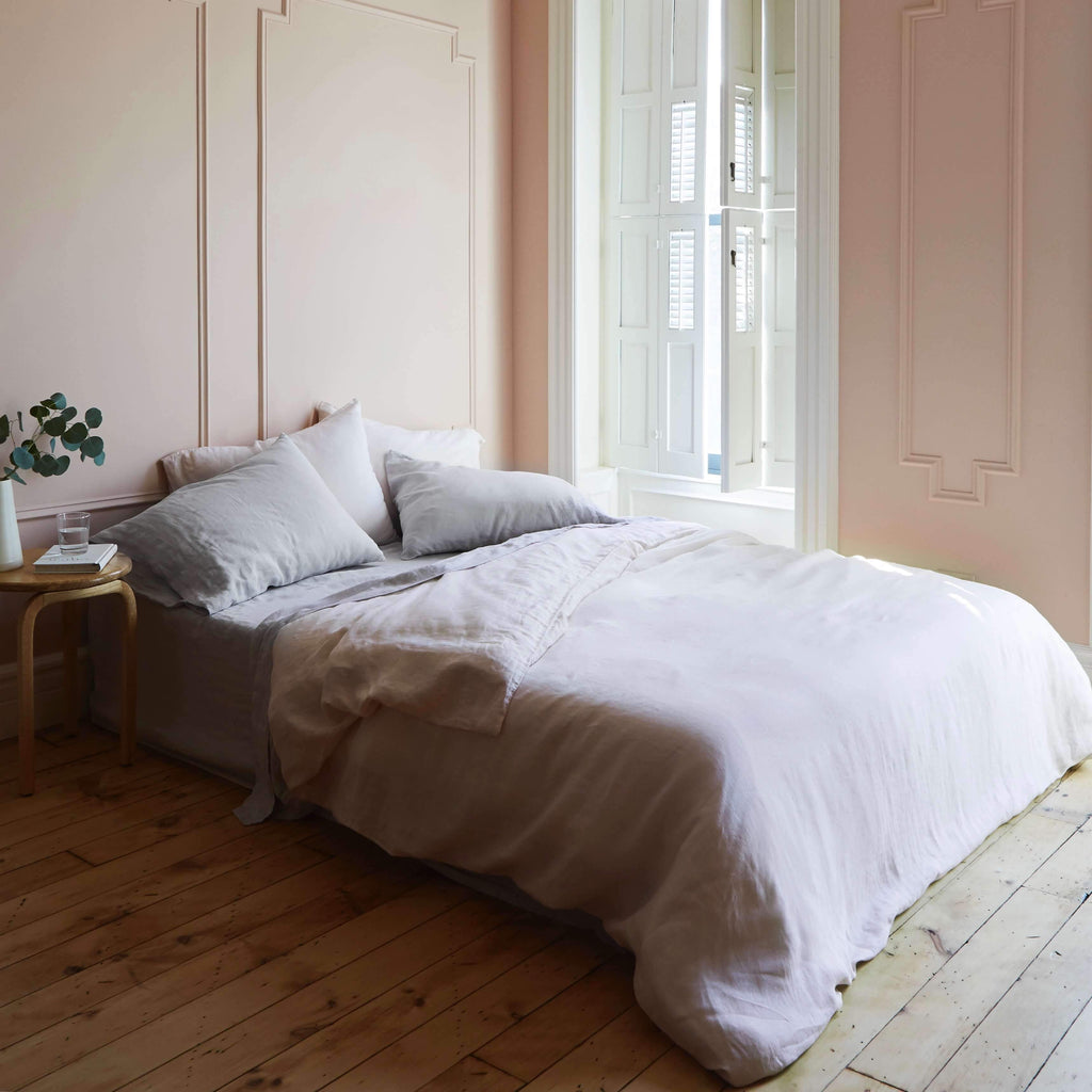 With soft earth tones of dusty blush and light grey, this linen bedding set brings a serene look to any bedroom. Made using the finest French flax linen and stonewashed for a relaxed, perfectly imperfect look, this bedding is light, breathable, and incredibly soft.